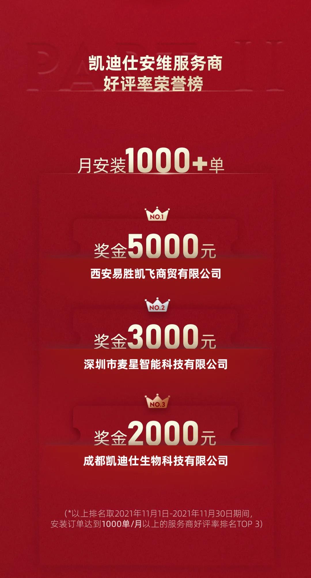 服務(wu)至上 | Kaadas凱迪仕11月安(an)維(wei)服務(wu)商(shang)榮譽榜髮(fa)布!