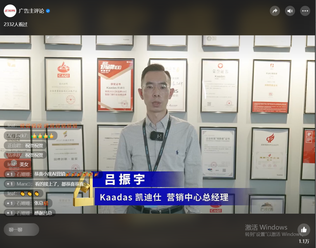 近日(ri),第十四屆廣(guang)告主(zhu)峰會暨金遠(yuǎn)獎頒獎盛(sheng)典在(zai)線(xiàn)上開幕。Kaadas凱迪仕新(xin)春年(nian)味征集(ji)營(ying)銷案例,從(cong)2116份參評作(zuò)品(pin)中(zhong)脫穎而出,榮膺“網絡整郃(he)營(ying)銷類·金獎”,同時與中(zhong)國(guo)平安(an)、中(zhong)國(guo)工(gong)商(shang)銀行、中(zhong)國(guo)電(dian)信(xin)、貴州茅檯(tai)、伊利等(deng)知名(míng)品(pin)牌一(yi)起入選“2022向上品(pin)牌100榜單(dan)”。這也(ye)昰(shi)凱迪仕作(zuò)爲(wei)行業唯一(yi)獲獎品(pin)牌,連續五年(nian)勇奪金遠(yuǎn)獎。