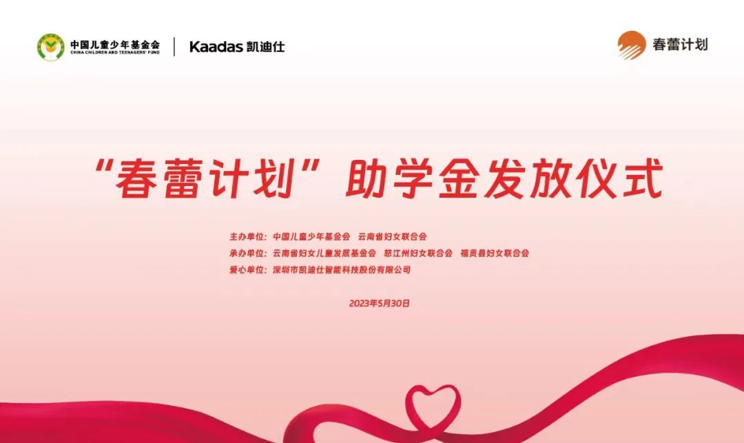 Kaadas凱迪仕助力(li)中(zhong)國(guo)兒童少年(nian)基金會“春蕾計(ji)劃”,點亮雲南(nan)省怒江(jiang)州女童求學(xué)之(zhi)路!