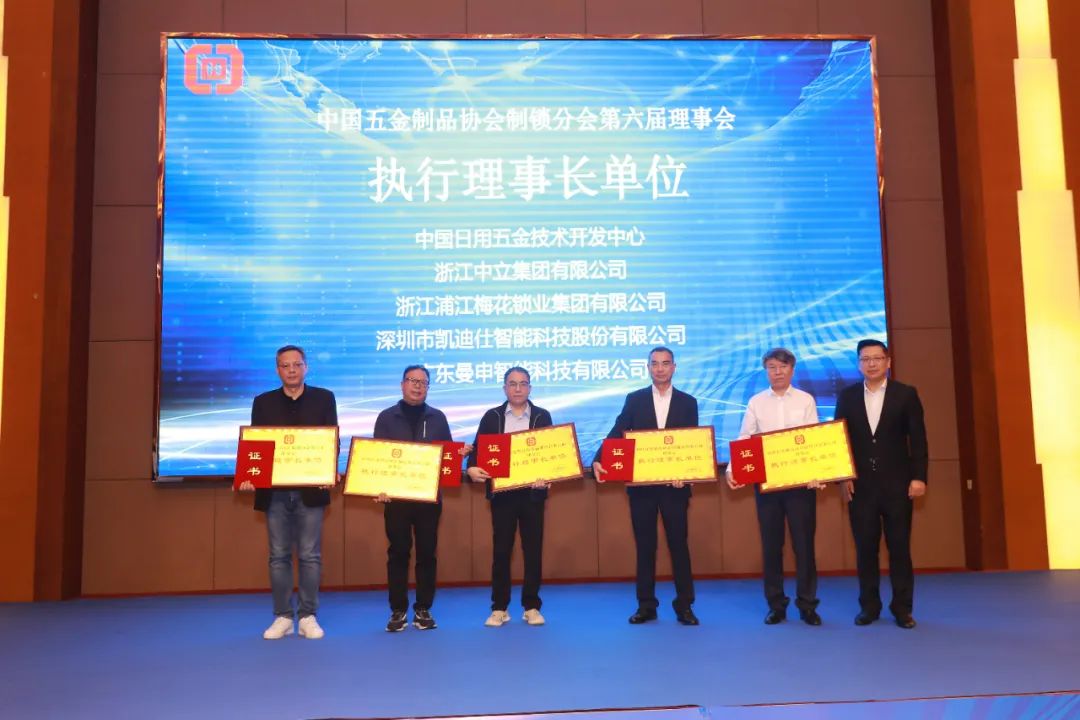 Kaadas凱迪仕品(pin)牌創始人(ren)兼集(ji)團(tuán)總裁蘇志(zhì)勇先(xian)生(sheng)受邀參會,并代(dai)表凱迪仕品(pin)牌領(ling)取“中(zhong)國(guo)五金製(zhi)品(pin)協會製(zhi)鎖分(fēn)會第六屆理(li)事會·執行理(li)事長(zhang)單(dan)位”證書咊(he)牌匾。