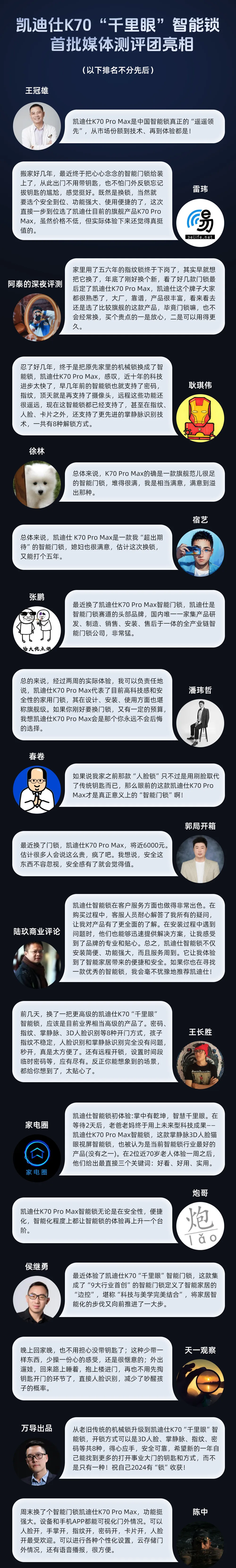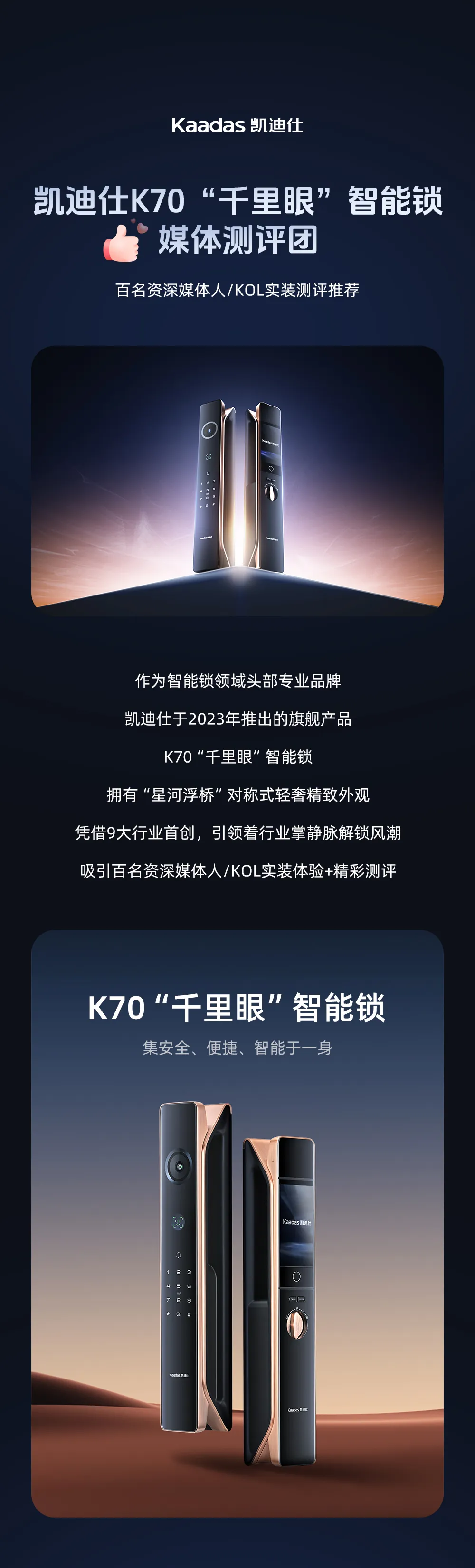 凱迪仕K70“千裏眼”智能(néng)鎖媒體(ti)測(ce)評團(tuán)首批(pi)亮相!百(bai)名(míng)資(zi)深媒體(ti)人(ren)/KOL實裝(zhuang)測(ce)評推薦!